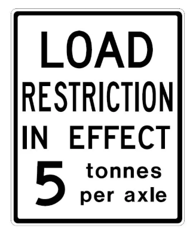 To ensure the protection of certain roads The Town of Gravenhurst puts a weight restriction of 5 tonnes per axle on the roads under the Towns jurisdiction.